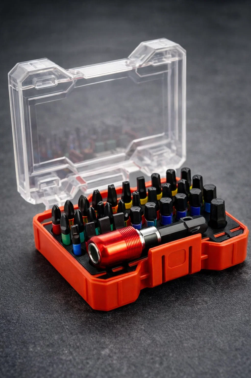 Універсальний набір біт із 32 предметів — зручне рішення для дому, дрібного ремонту та збирання меблів. Усе необхідне — в одному компактному кейсі 🧰